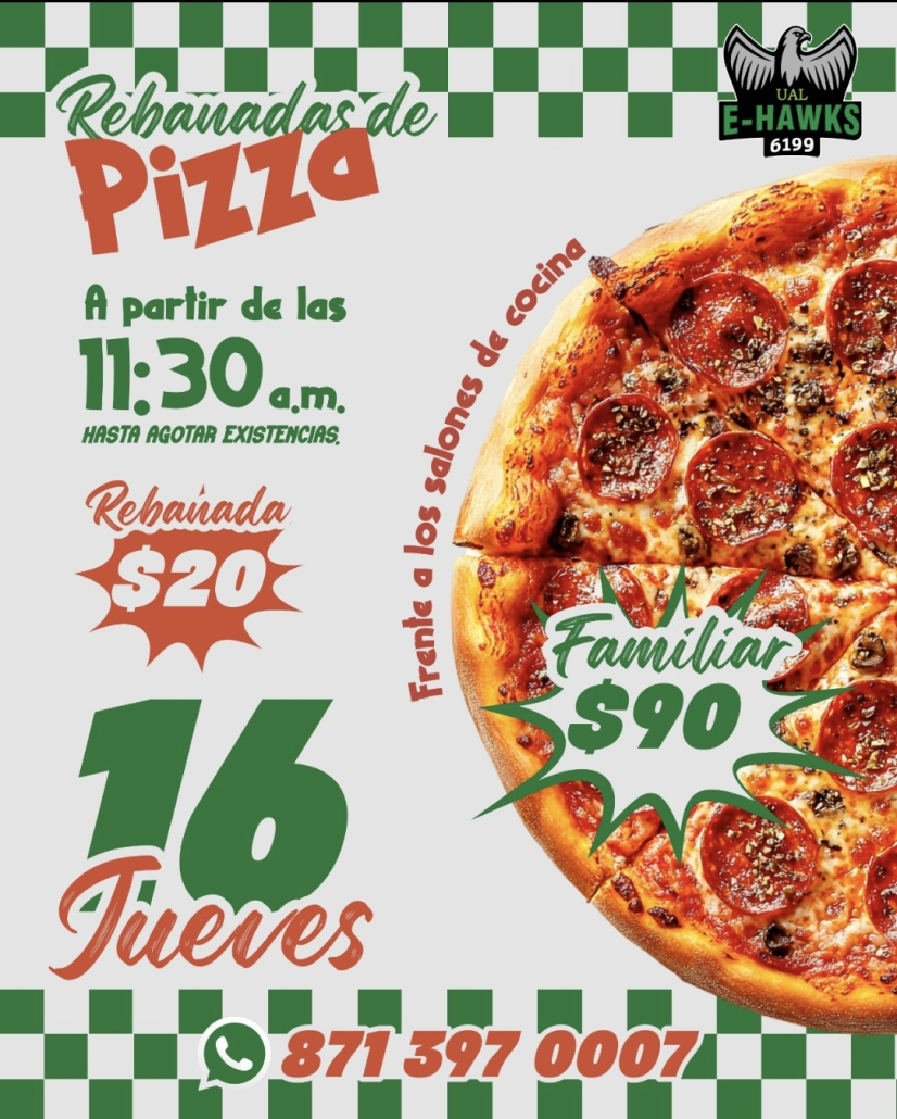 El costo de la pizza completa de pepperoni es de 90 pesos, mientras que la rebanada tendrá un precio de 20 pesos. A través de estas iniciativas, los integrantes del equipo buscan el respaldo de la comunidad universitaria y de la sociedad en general.